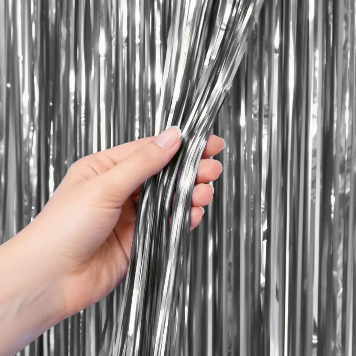 Cortina Metalizada Decoração Fitas Prateado 1x2m Festa